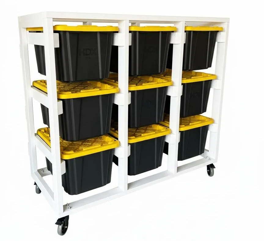 We build heavy-duty tote shelves to keep your garage neat, safe, and accessible.